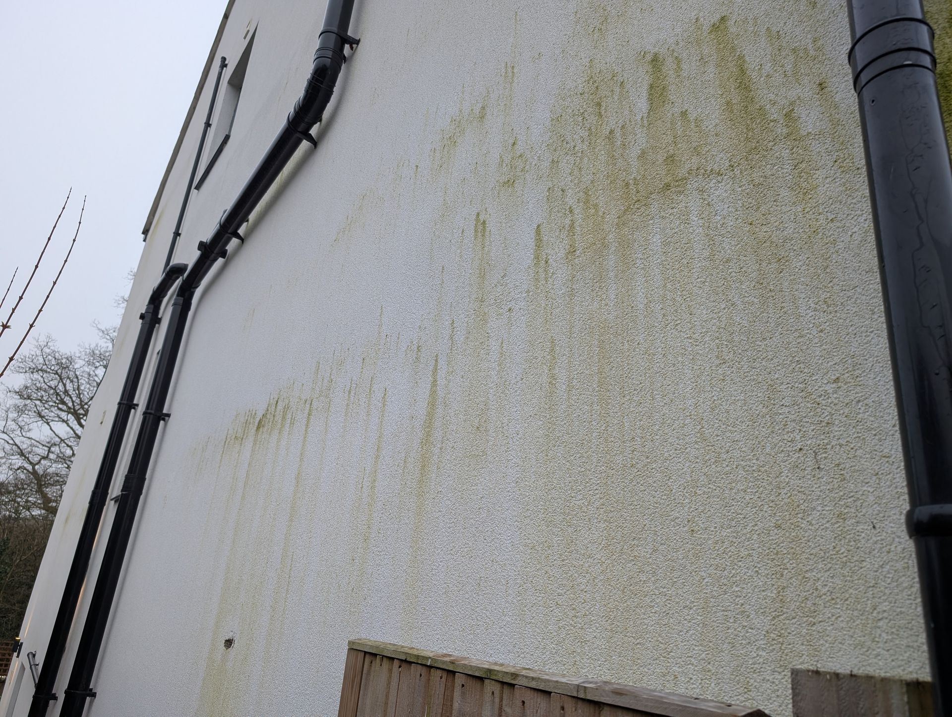 Our specialist softwash render cleaning system removes these stains safely without damaging the surface.