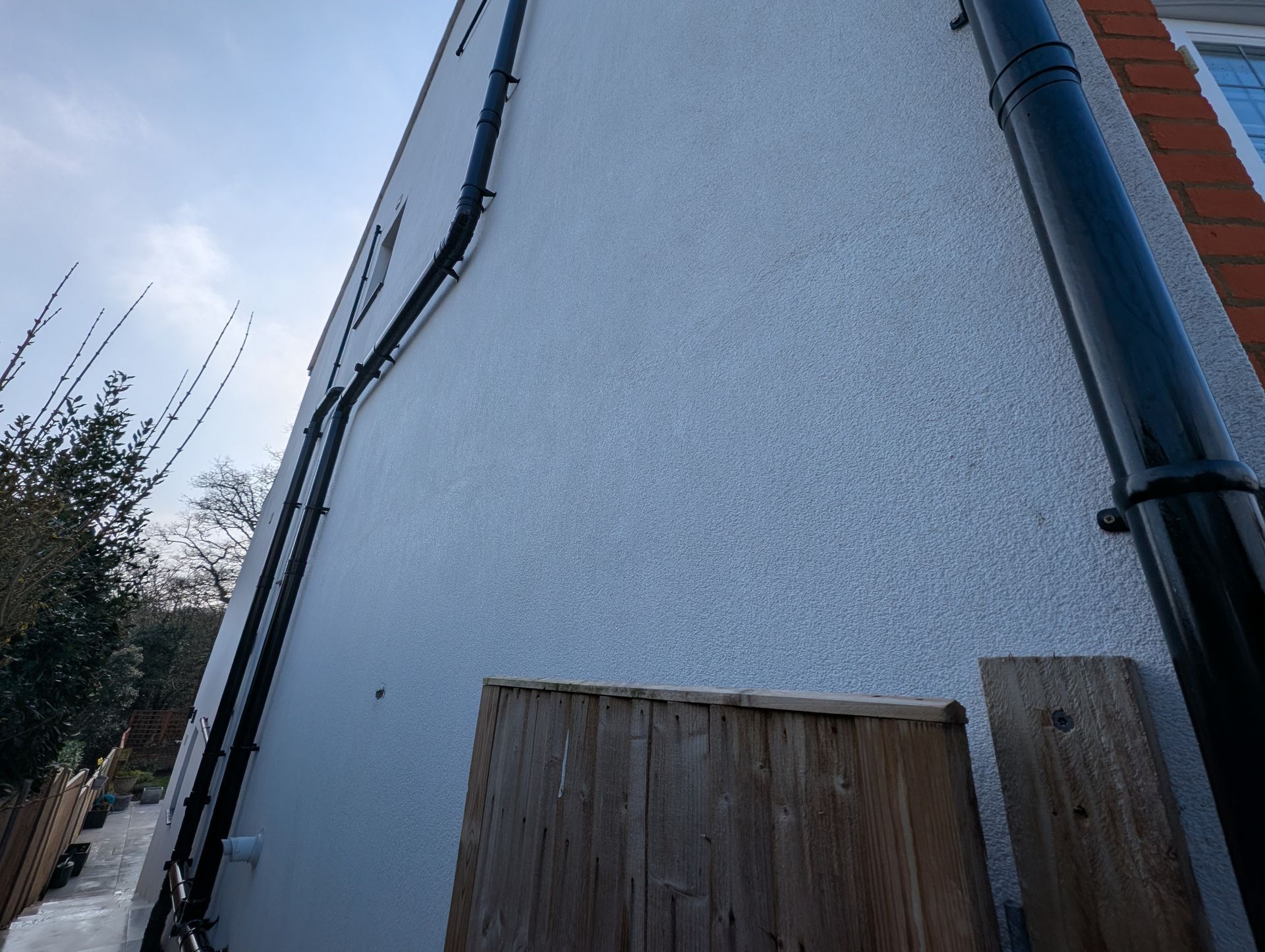 Over time, render surfaces such as K-render, monocouche render and silicone render can develop green algae staining, black marks and general weathering. This is extremely common across Hertfordshire and can make a property look tired or poorly maintained.